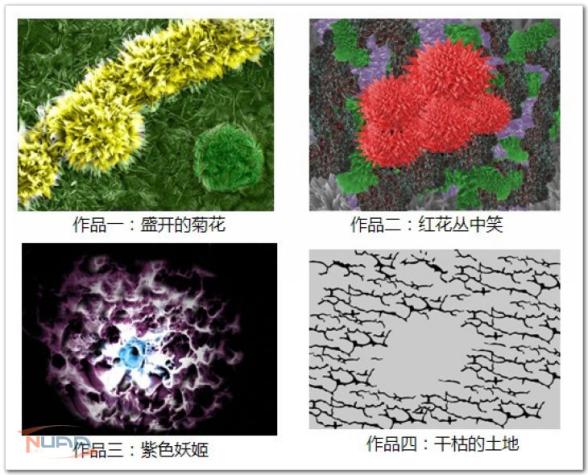 经过网络评选和专家评选两个过程的角逐,最终我校研究生宋健以作品“盛开的菊花”荣获大赛唯一的特等奖,其作品原图是γ-TiAl经多弧离子镀铝后的试样表面微观形貌图,经过900℃抗热震性能试验循环75次后形成。本科生周涛以用扫描电镜在加速电压2KV和低真空条件下,观察水泥,得到的微观结构图艺术化处理而成的“红花丛中笑”获三等奖,杨文秀、李伶通分别以生物质炭的微观组织显微处理图“紫色妖姬”、无缝钢管(正火)断口分析材料组织结构拉伸断口的等轴韧窝处理图“干枯的土地”获优胜奖。