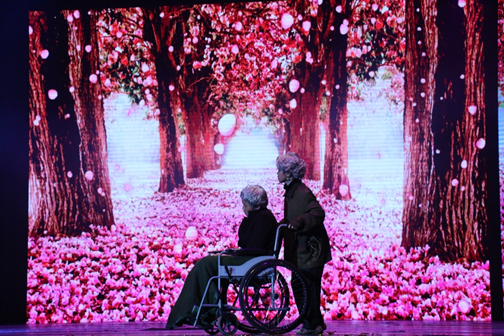 据悉,《木槿昔年》讲述了抗日战争时期,有志青年昔年因为国仇家恨,毅然走出校园成为一名战地记者,自此与其爱慕多年的搭档木槿分别。二人一直保持书信联系。然造化弄人,昔年意外失去联系,木槿悲痛欲绝,不忘与昔年“搭档一辈子”的约定,一直等昔年回来。时光荏苒,若干年后,步入老年的木槿在一次采访抗战老兵的过程中,意外获得了昔年生还的消息。看着台上同学们极富感染力的表演,台下的观众无不为之动容,掌声经久不息。