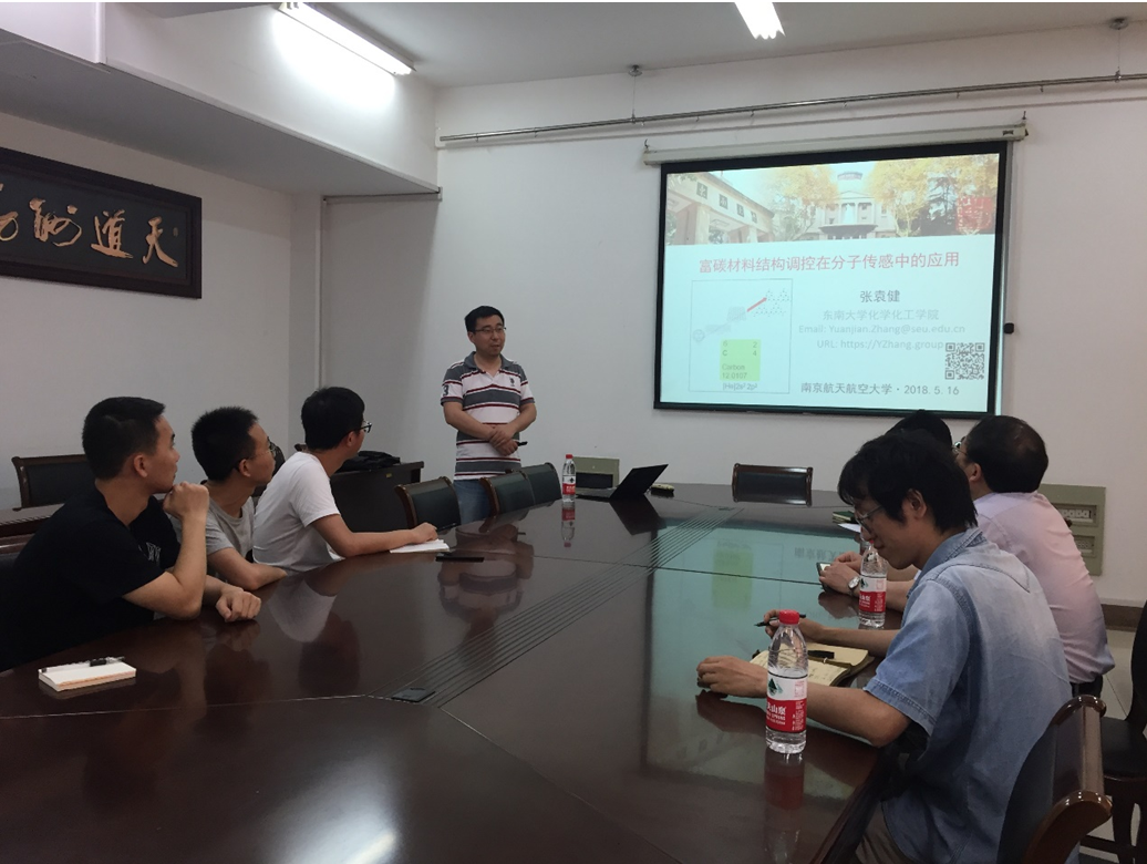 2018年5月16日,东南大学化学化工学院张袁健教授,应我校Azhar Ali Haidry副教授邀请,为我校师生做了题为“氮化碳结构调控在分子发光分析中的应用”的学术报告,报告由成人漫画 Azhar Ali Haidry副教授主持,共有20余位师生参与聆听了此次报告。