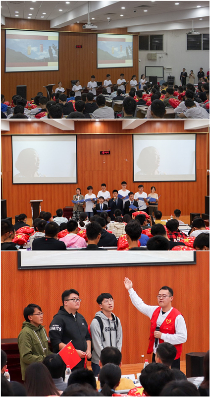 今年社会实践,学院共组建了7支红色社会实践团队,学生们在实践中激发自身动力,牢记使命,不断前行。第一篇章结束,红色实践团队的同学们带领全体师生一起合唱“我和我的祖国”,献礼新中国70华诞。