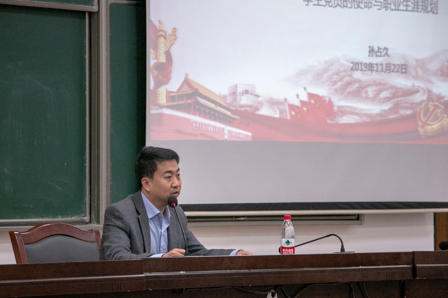 换届大会上,孙占久同志还为同学们准备了一场题为《践行初心使命 勇于担当作为——学生党员的使命与职业生涯规划》的党课。孙书记从南航建校的历史使命出发,结合学院三十余年的发展历程向同学们讲述了南航人负重奋进、献身国防、求实创新、志在超越的使命担当。并以学生党员的身份为起点,向同学们做出了对于自身职业生涯规划的期望和要求。