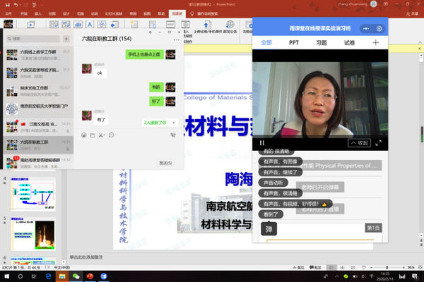 2月9日、10日,学院教学院长陶海军连续两天在教职工微信群里进行了图文培训,分别教授大家如何在南航精品课程平台上建立课程,如何安装注册使用雨课堂。截止目前,成人漫画 已在校精品课程平台完成新建课程60门,63位老师绑定雨课堂。