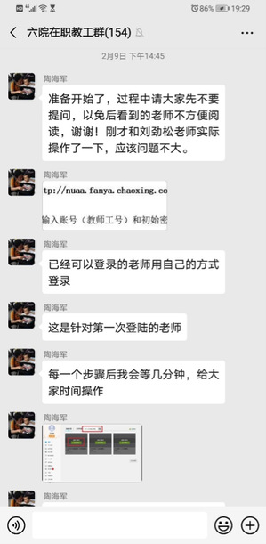 2月8日学校正式发布《关于2020年春季学期教学工作安排的通知》后,学院迅速召开视频党政联席会,明确疫情防控期间在线教学实施方案,对春季学期有教学任务的教师进行了授课准备情况摸底调查,组建“六院线上教学工作微信群”,针对性地分享学习资料,安排已有智慧教学工具使用经验的教师开展相关技术指导和咨询,帮助教师克服畏难情绪,扫清入门障碍。