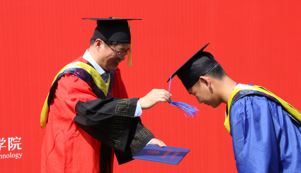 随后,张校刚为毕业生们代表拨苏正冠、颁发学位证书,恭贺毕业生们获得学位。本次毕业典礼中,毕业生的导师们也来到了现场,与毕业生互诉心声与情谊,寄语祝福。博士毕业生宋力深情地说“本以为今年特殊时期的毕业只能静悄悄的离开了,没想到学院准备了这么暖心的毕业典礼,感谢学院!”毕业典礼在悠扬的校歌声中圆满落幕,仿佛叮嘱毕业生定要效法羲和驭天马,志在长空牧群星!