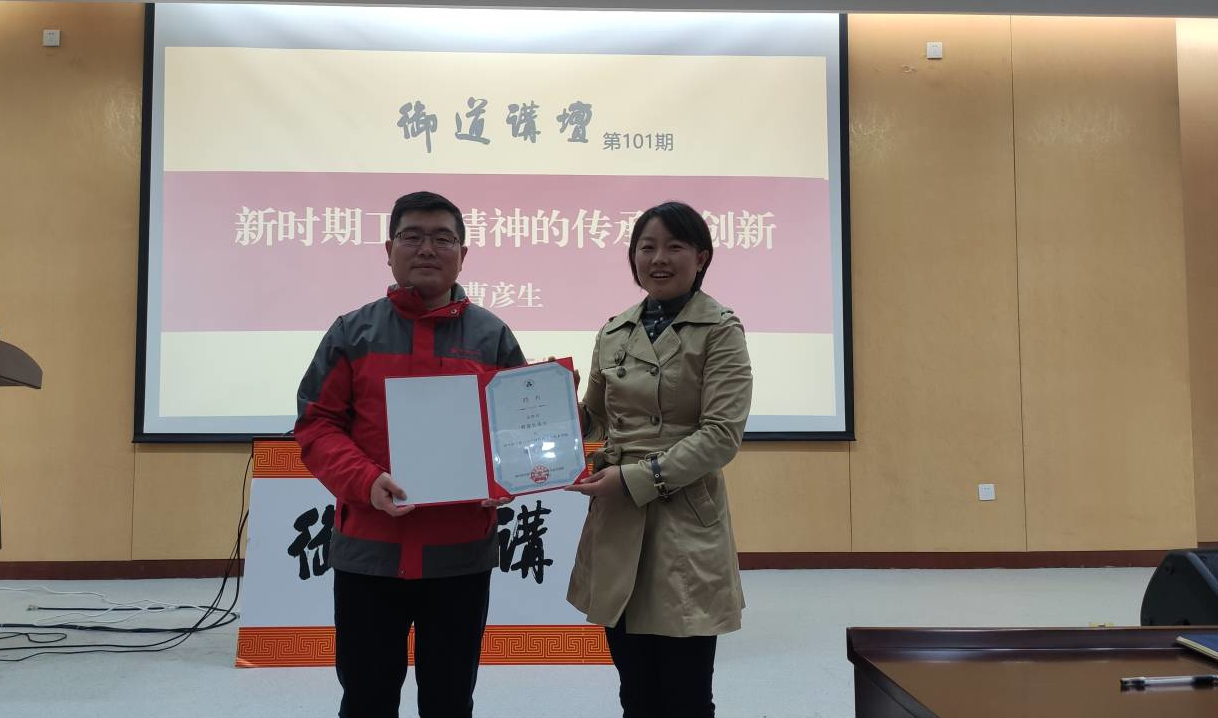 随后,曹彦生从“钻进技术里,雕刻国之重器”、“铺就星光道,圆梦永前行”等方面为我们深刻论述了新时期工匠精神的传承和创新,他强调了周总理关于国防事业的16字方针“严肃认真、周到细致、稳妥可靠、万无一失”,为工匠精神给出了准确的释义。“经一师,长一技;授一徒,铸一艺;道相传,义相承”,如今的曹彦生已从”经一师”走到了“授一徒”,师徒技艺相承,矢志不渝,接续奋斗,将一颗炙热的匠心永续传承。