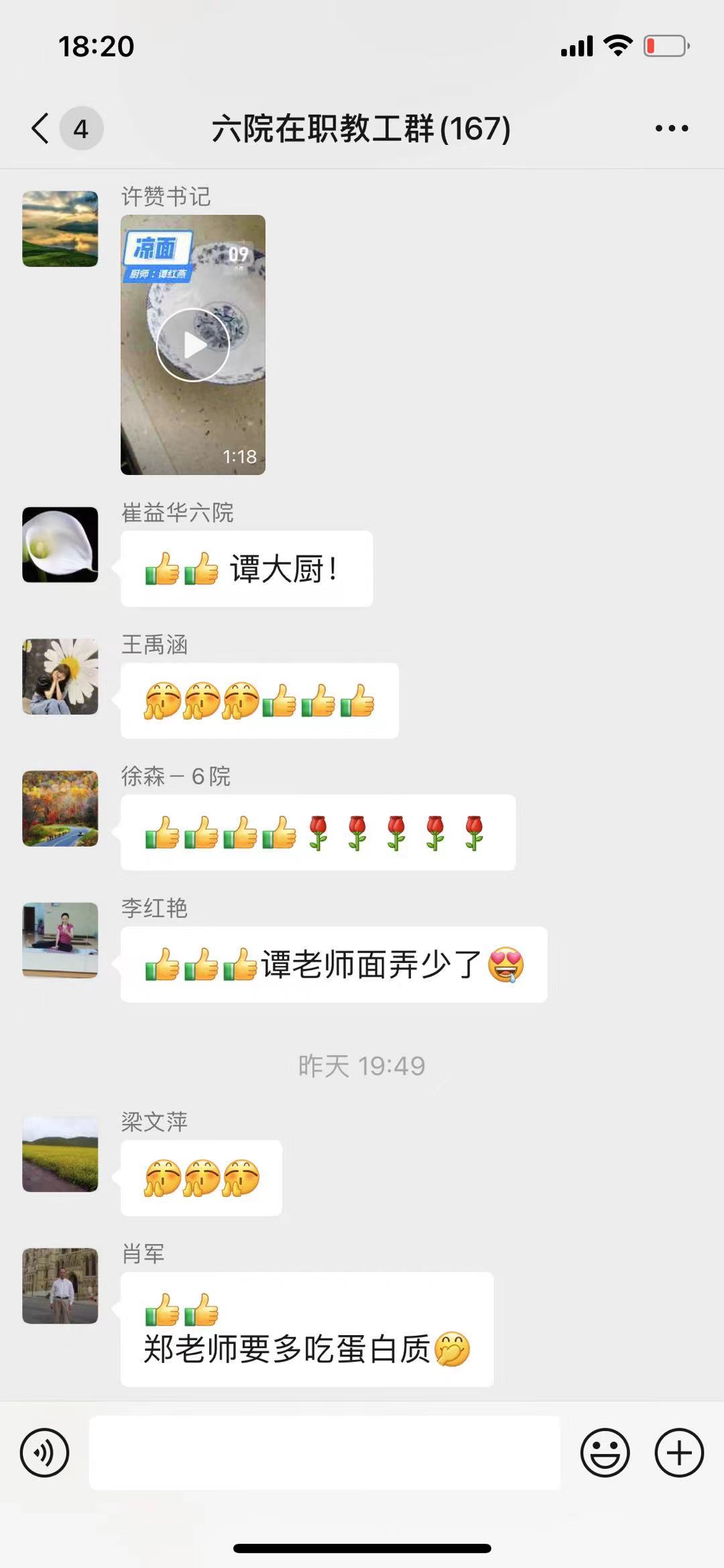 老师们的居家生活同样精彩,他们有的多才多艺,琴棋书画样样精通,有的则是烧饭能手,故面向全院教师征集“宅家厨艺秀”、“宅家才艺秀”作品。通知发布当天就收到了第一期厨艺秀——由院机关谭红燕老师展示的“美味凉面”,为炎炎夏日送来一丝清凉。“期待更多的作品”、“又学会了一道菜”、“美女加美味,爱了爱了”……作品一经发布受到了全院教师的一致好评,老师们纷纷点赞,感谢工会组织活动丰富了大家的假期生活。