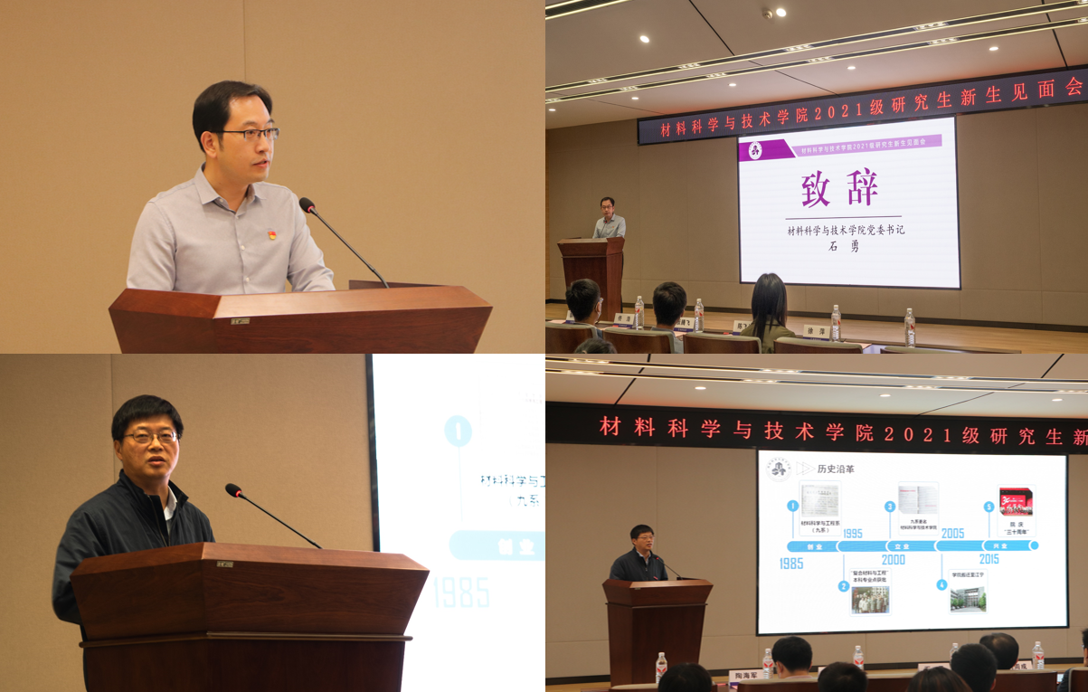 随后,张校刚对学院整体进行了全方位的介绍。张校刚从历史沿革、专业设置、办学条件、学科现状、师资队伍、人才培养、学科水平、科学研究等方面介绍了学院的基本情况。张校刚强调,希望研究生新生秉持着“团结、俭朴、唯实、创新”的校训,不忘初心,砥砺前行,勇于应对困难和挑战,为“材料+”及祖国的航空航天事业、国防事业做出贡献。