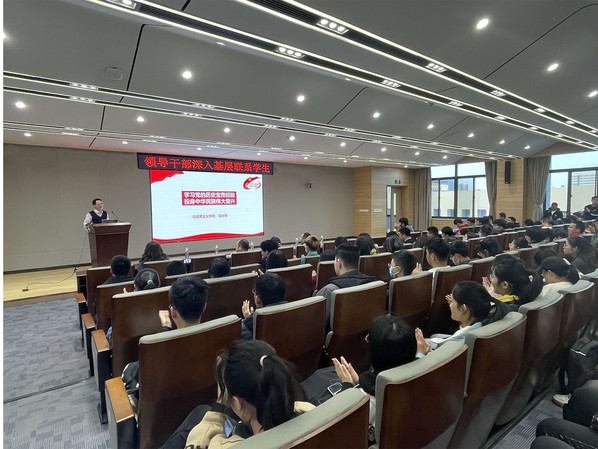为贯彻我校《领导干部深入基层联系学生工作方案》文件精神,成人漫画 继续开展领导干部深入基层联系学生活动。12月17日下午16:00,图书馆对接领导与学院师生在院楼B501报告厅举行了一次干货满满、温馨十足的共建活动,活动邀请了马克思主义学院吴永祥老师讲授党课《学习党的历史宝贵经验,投身中华民族伟大复兴》。图书馆党总支书记杨名大、馆长袁家斌 、副馆长单冠贤、刘丽琳、党政办主任朱永武,成人漫画 党委副书记许赞,各年级辅导员以及2019级学生参与了本次活动。