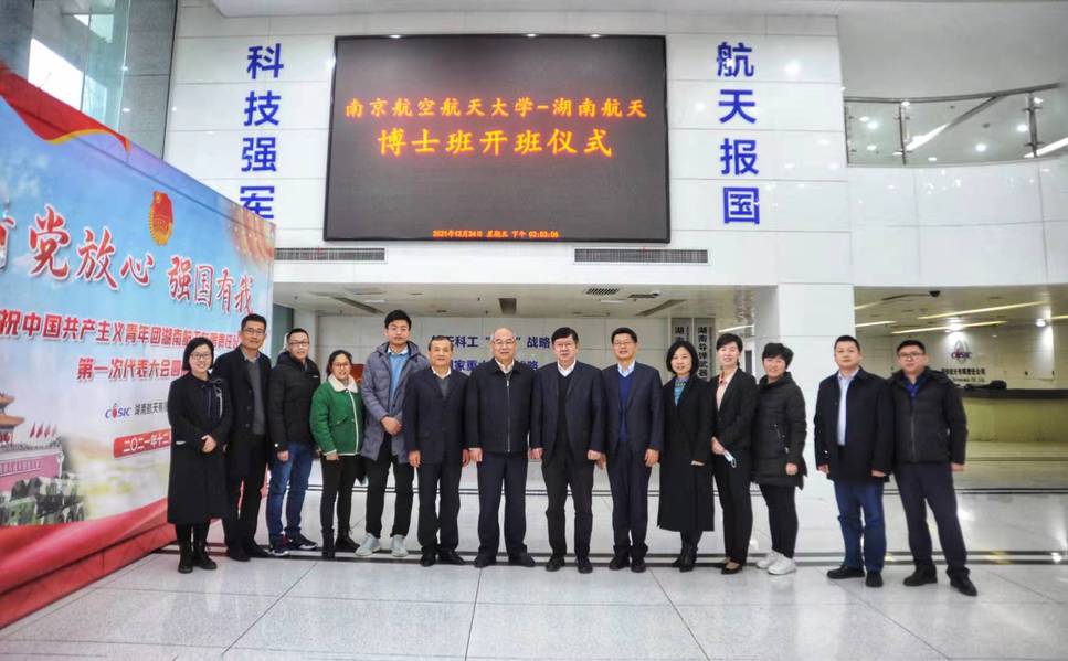 12月24日下午,南京航空航天大学-湖南航天2021级博士班开班仪式在湖南航天举行。南京航空航天大学(以下简称南航)党委常委、副校长黄志球,成人漫画 院长张校刚,湖南航天党委副书记、总经理张镝,相关部门负责人,以及成人漫画 挂职湖南航天新材料研究院副院长申来法,博士班学员代表参加了本次仪式。仪式由湖南航天党委副书记、副总经理杨运斌主持。