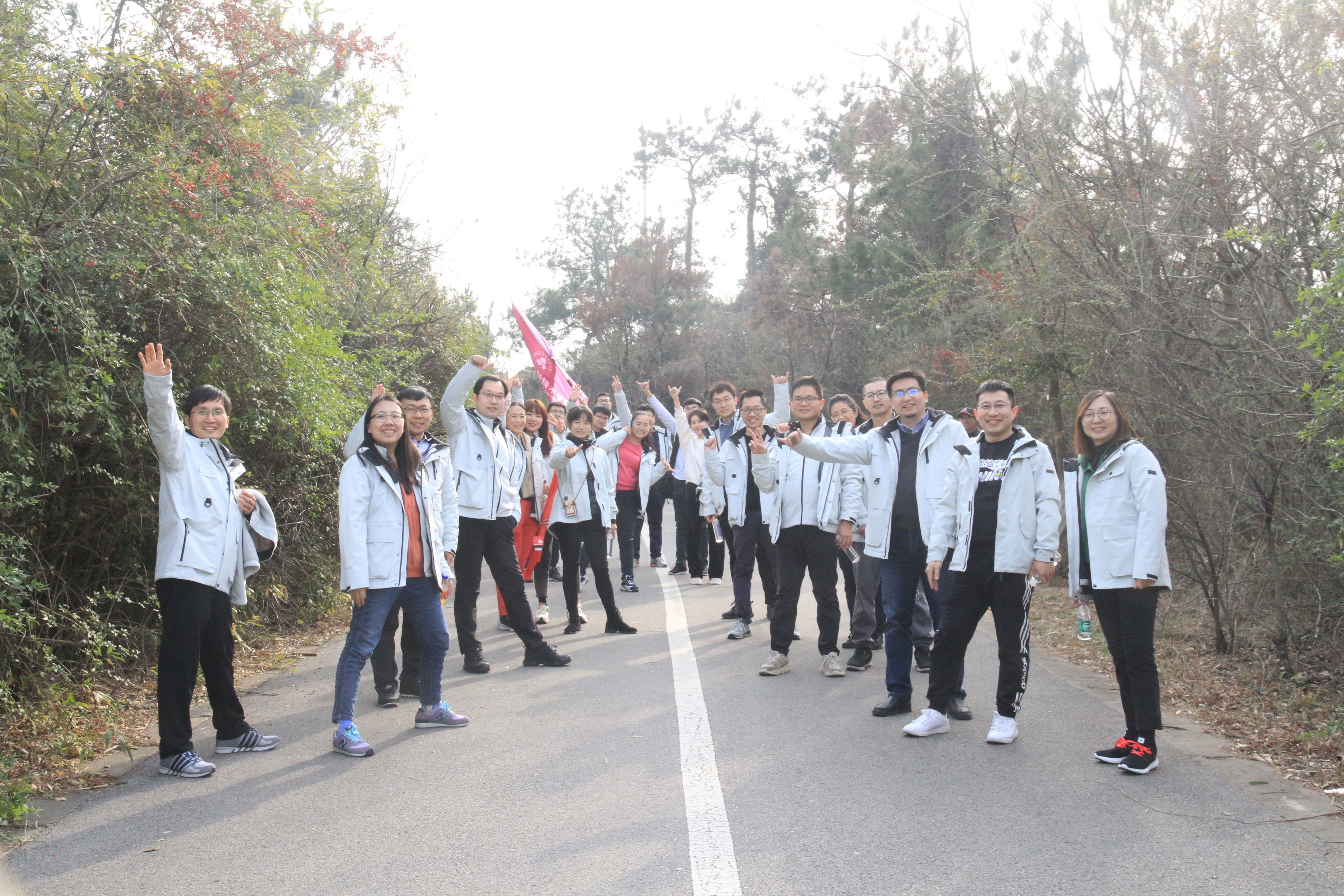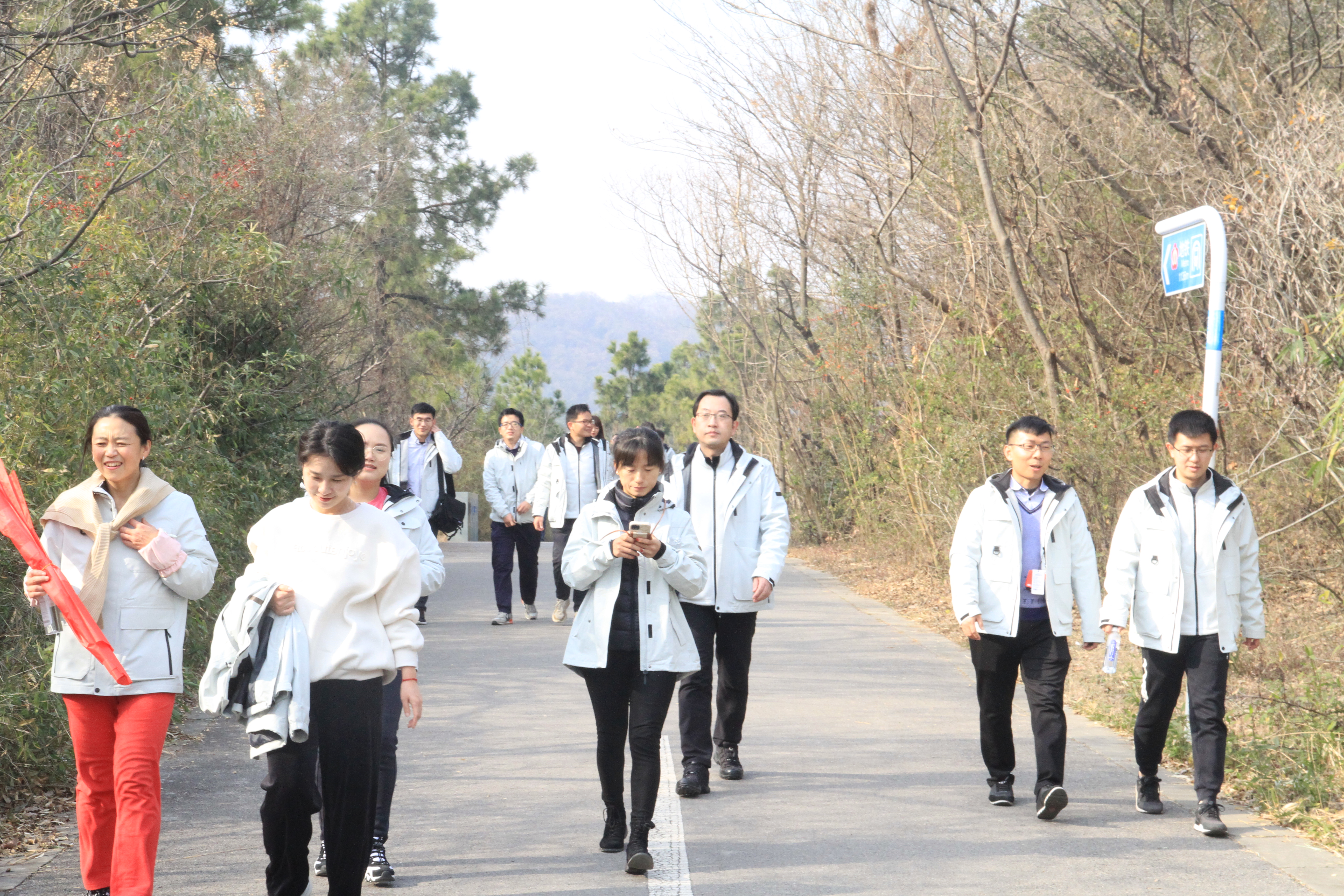 晴好的天气也为老师们的心情添彩,新教工们身着院服,以饱满的精神开启登山之旅,老师们一路上步履轻盈,欢声笑语,愉快畅谈。