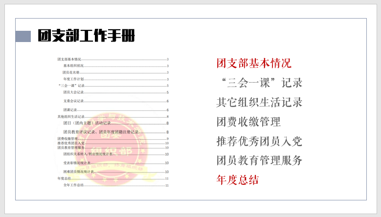 首先,原院团委组织部部长林思琪详细介绍了《团支部工作手册》中各项内容的填写规范与要求,具体解释了“三会一课”的概念,并对其他组织生活进行了补充,展示了团支部推荐优秀团员入党的流程。