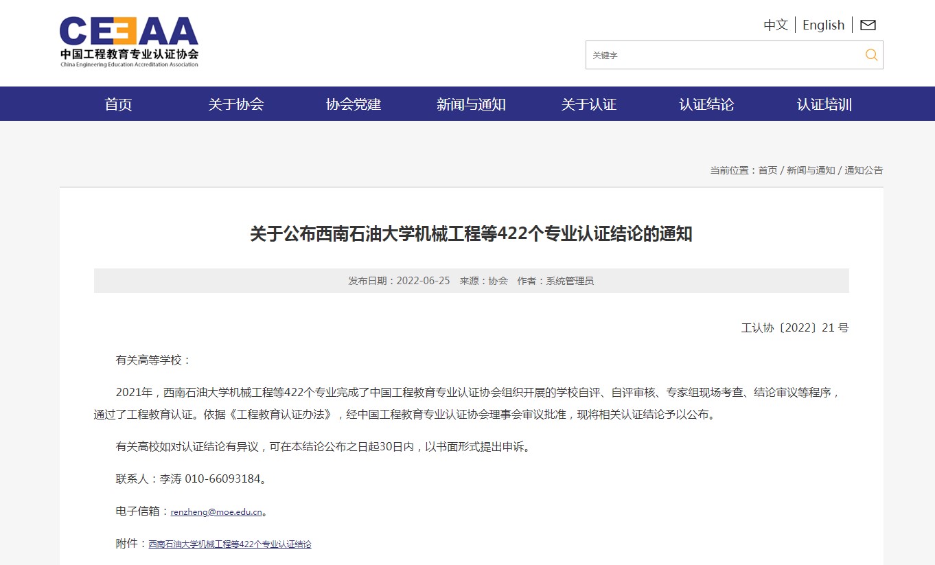 近日,中国工程教育专业认证协会正式公布了2021年工程教育专业认证结论,成人漫画 核工程与核技术专业顺利通过本次认证,有效期为6年(2022年1月至2027年12月)。这是继材料科学与工程之后,学院第二个通过认证的专业。