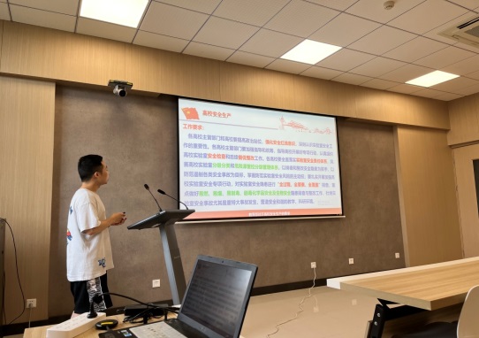 首先,刘劲松做了“习近平总书记关于安全生产的重要论述”的领学报告,和大家一起重温了十八大以来习近平总书记关于安全生产的重要论述,以及2018年习近平总书记全国教育大会上的讲话、2020年复工复产前习近平总书记安全生产重要指示等,深刻领会习近平总书记对安全的重视、对人民的关心。暑期马上来临,提前提醒教师和学生们从思想上重视实验室安全、从行动上保障实验室安全。