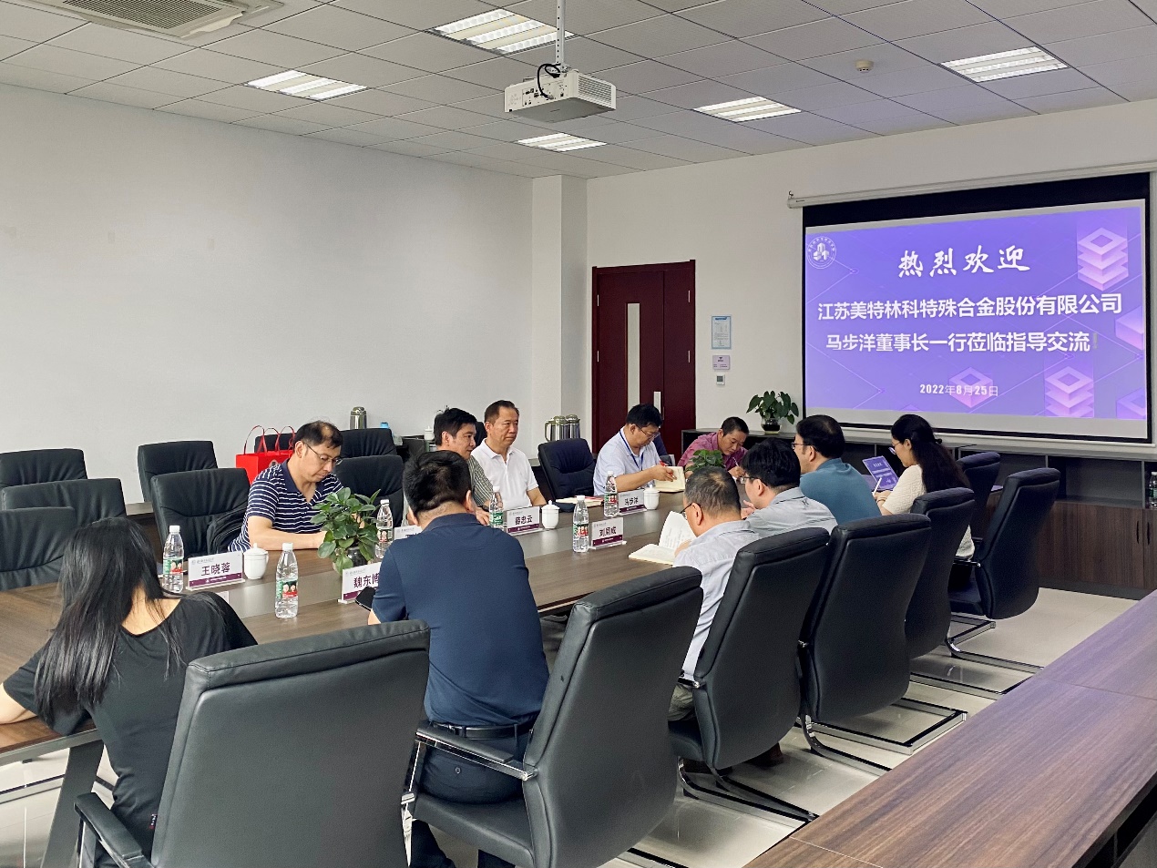 8月25日上午,江苏美特林科特殊合金股份有限公司董事长马步洋一行来成人漫画 进行参观交流。学院党委书记石勇、副院长刘周成以及部分教师代表参加了此次交流。