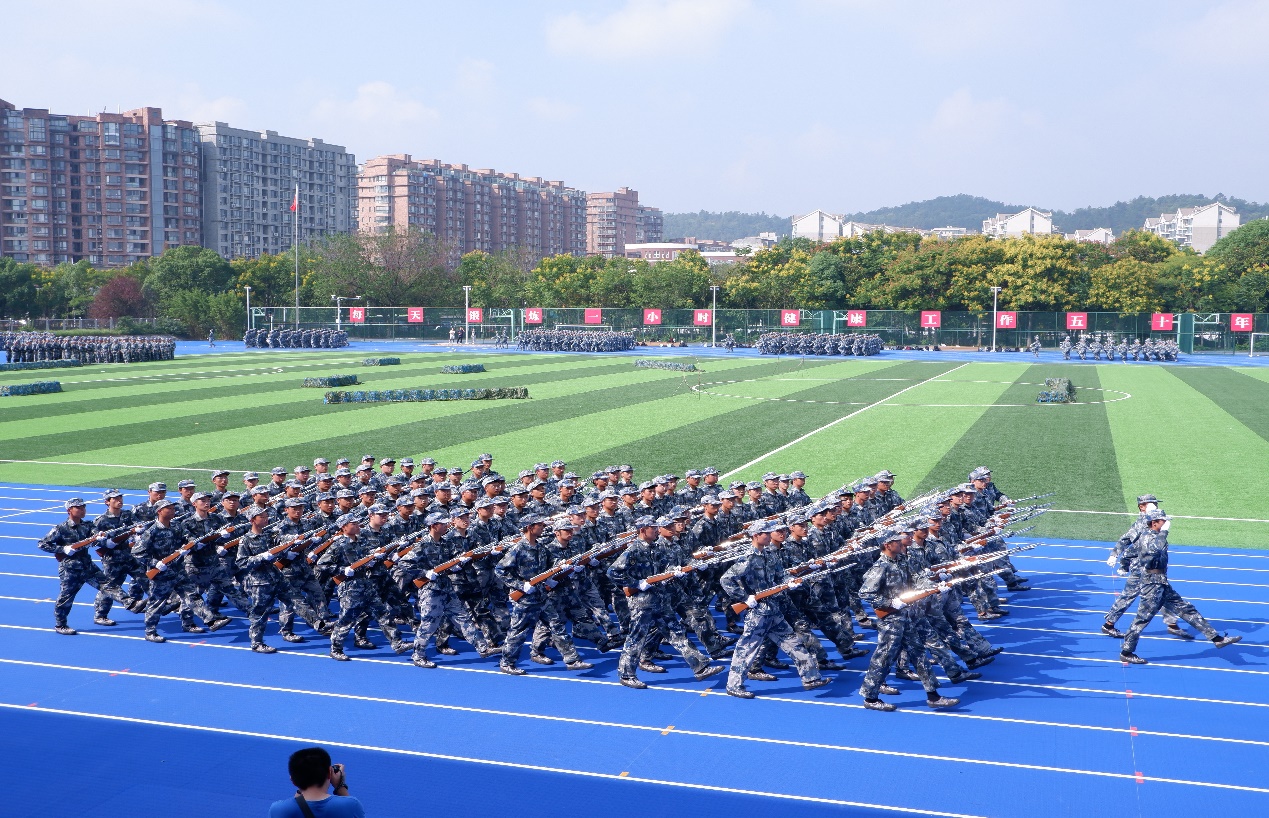 阅兵仪式上,成人漫画 男子劈枪方阵作为第一方阵首先上场,他们精神抖擞、步履铿锵、斗志昂扬,用恢宏的气势和整齐划一的规范动作,向在场师生展示了他们刻苦训练的成果。