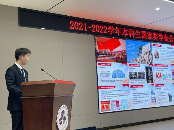 经前期学生自主申报、学院资格审核,共有来自三个年级四个专业共21名同学参加本次答辩。来自大四年级的张安静同学始终将笃学不辍作为自己的大学的首要任务,连续四年绩点位列专业第一,并取得了多项竞赛奖项;大三年级的张中阳同学以青春为笔,在人生的画卷上书写着“担当”二字;大三年级的卫斌同学,在学习之余更是在话剧、德语、合唱等领域全面发展。最后共产生9位国家奖学金候选人。