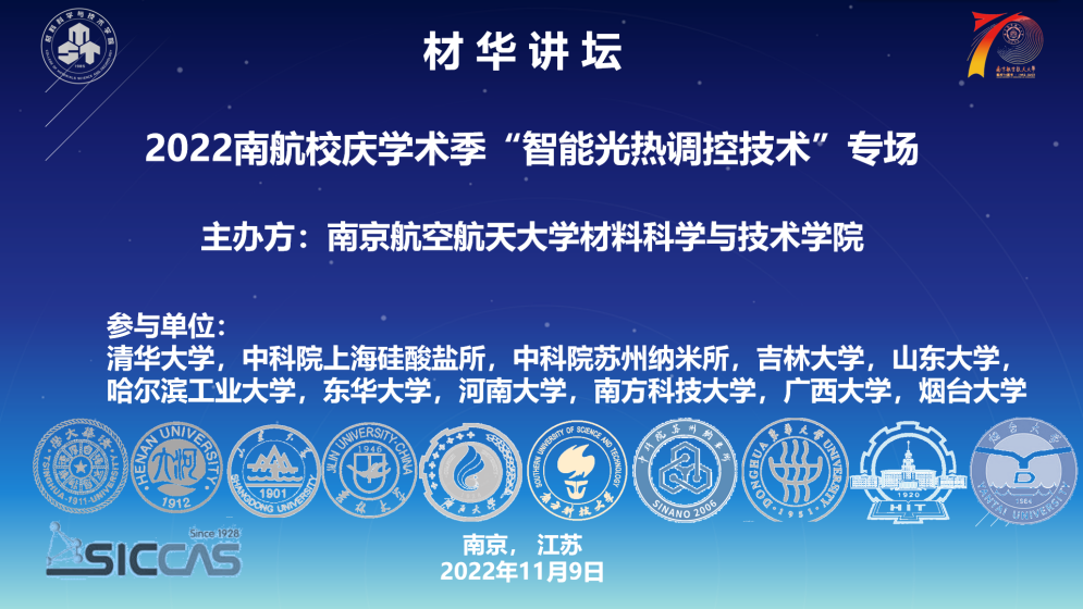 本次会议以“智能光热调控技术”为主题,聚焦国家“双碳”战略,面向节能发展,契合国家可持续发展战略。会议旨在为智能光热调控领域国内各高校专家提供一个交流平台,分享前沿研究成果,深入探讨智能光热调控技术在建筑节能窗、汽车天幕、节能显示、军事伪装以及航天器智能热控领域的应用研究,同时加强了我校在该领域与各高校的联系,为以后的深度交流创造了有利条件。