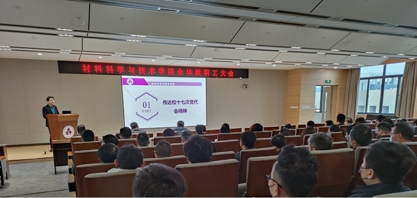 石勇结合2023年全国“两会”精神,带领学院全体教职工明方向、理思路、划重点,系统学习了学校十七次党代会指示精神和工作报告,指出学校党委工作报告高举旗帜、主题鲜明,内涵丰富、思想深刻。既全面总结了学校过去五年的辉煌成就和办学历程中凝练出的深刻启示,又阐明了新阶段学校的机遇与挑战、布局与要求、任务与行动等内容,擘画了新时期学校高质量、系统性、国际化发展的宏伟蓝图,是凝心聚力、振奋人心的报告,更是掌舵领航、定标导向的报告。他强调全院师生一是要深入学习贯彻党的二十大精神和校第十七次党代会精神,形成推动高质量发展的强大动力。以更强的自觉、更高的站位、更实的举措,立足岗位、担当作为。二是要因势而谋、乘势而上,推动学院事业发展再上新台阶。要坚定发展自信,下好“先手棋”;强化系统观念,打好“组合拳”;坚持问题导向,用好“关键招”;突出融合贯通,练好“基本功”,实现提质攻坚新突破。三是要凝心聚力,团结奋斗,确保各项任务落实落地见成效。学院全体师生要把担当作为的能力提起来,把敢为人先的势头扬起来,真抓实干的作风树起来,团结奋斗的合力聚起来,汇聚起争创一流的磅礴力量。要在夯实做强国防底色、行业特色上贡献更多更大的“材料担当”,在为党育英才、为国铸重器上作出更多贡献,走深走实新时代“材料强国”之路。