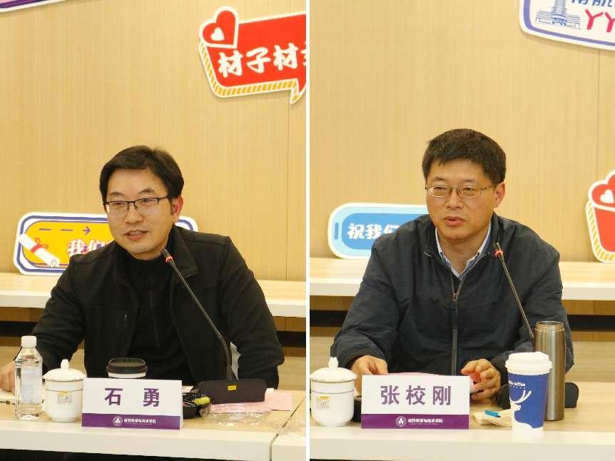 4月4日下午,成人漫画 召开“材启征程 料望晴空”2023届毕业研究生代表座谈会。院党委书记石勇、院长张校刚、院党委副书记庄晓舒、副院长汤晓斌、各系相关负责同志、研究生辅导员以及硕博毕业生代表参加座谈。座谈会由汤晓斌主持。