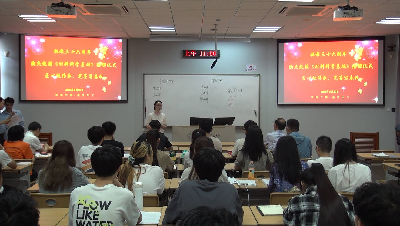 为致敬成人漫画 陶杰教授从教36周年,任教《材料科学基础》课程20周年,传递弘扬陶杰教授笃志教学的育人精神,“最后一课”活动上,材料加工工程系党支部、柔性成形技术与装备团队研究生纵向党支部,在本学期《材料科学基础》课程的最后一课组织举办了陶杰教授从教36周年结课仪式活动。