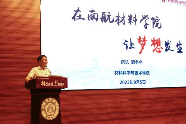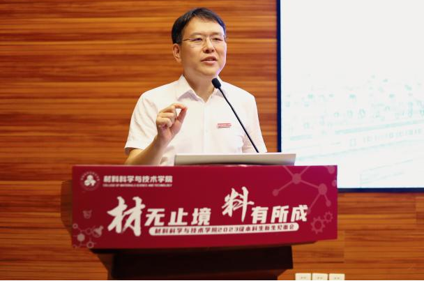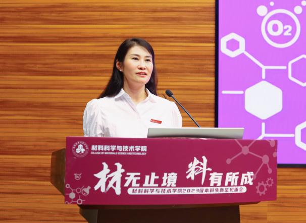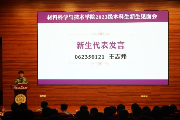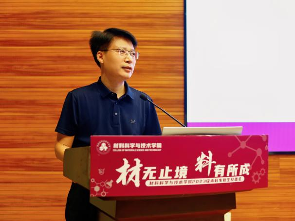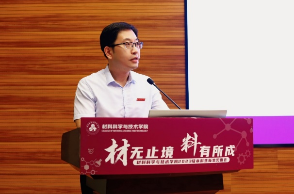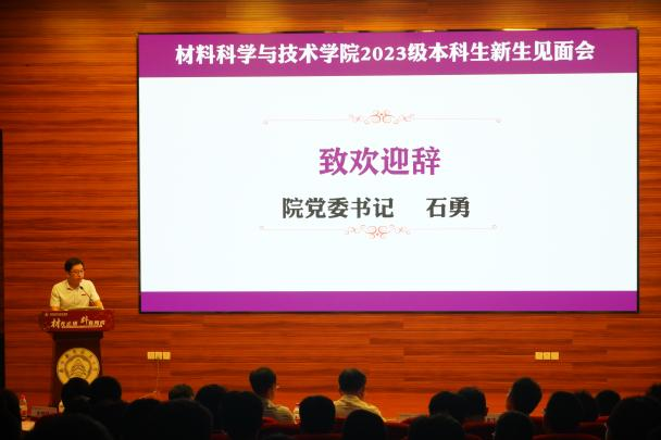 学院党委书记石勇首先代表学院对2023级本科新同学的到来表示热烈欢迎,并对新生提出三点希望。一是希望同学们传承“航空报国红”,继承“志在长空蓝”的人生背景色,坚持“科技报国、材料强国”的理想与担当,与祖国同行、与时代共进;二是希望同学们探寻“神秘材料紫”,培养“脚踏实地黄”的成长主题色,静心学习、祛除浮躁,在材料领域不断拓宽拓深专业知识,为解决材料领域“卡脖子”难题,贡献青春力量。三是希望同学们绽放“活力四射橙”,增添“青春洋溢绿”的未来亮点色,展现新时代青年风采。他寄语同学们在自己人生特有底色上不断求新,绘制七彩青春画卷,求得人生之大美。