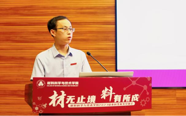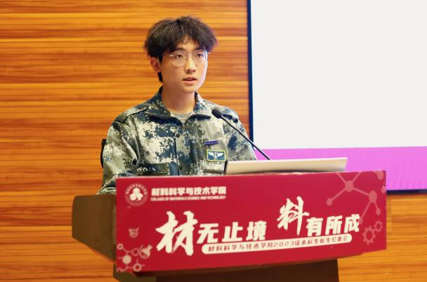 班主任代表陈照峰寄语新同学们在校期间要“加入一个团队、掌握一种方法、学习一种软件、精通一种材料”,在不断学习中强化本领担当,在精益求精中突破自我。