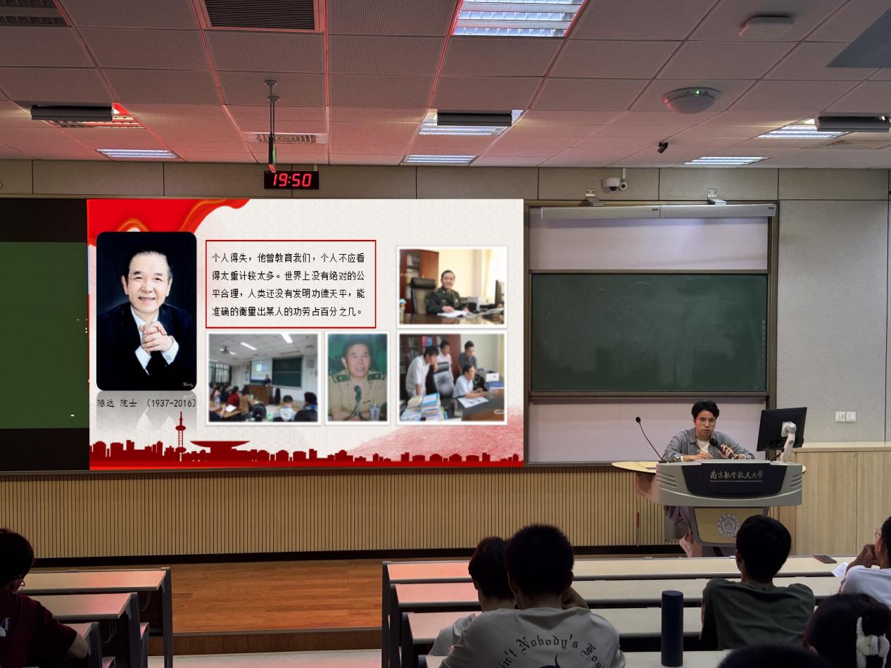 随后,学院研究生第七党支部支部书记梁旭文为全体新生带来一堂《青年时代要树立正确理想,坚定初心信念》微党课,燃烧斗志,大爱于心,他以学院核学科创始人陈达院士为核事业奋斗的一生为切入点,围绕入党动机、党员的权利义务初心使命、党性的锤炼等三个方面为新生们讲授了一节精彩的微党课。