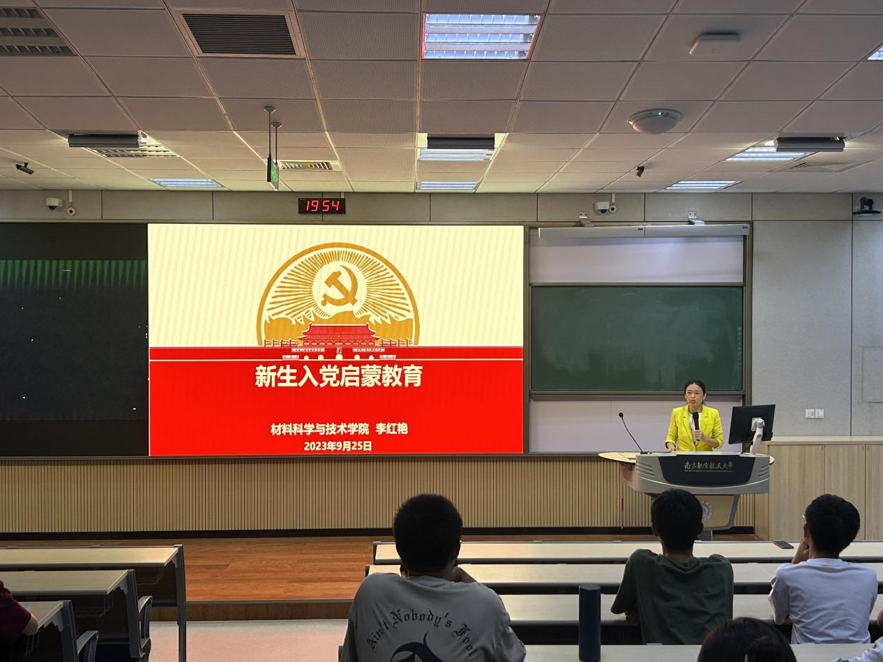 李红艳为新生们详细介绍了入党程序和标准,介绍了入党的关键时间节点、入党积极分子、发展对象推选办法以及各环节程序和注意事项,激励新生们努力提升自己党的理论知识和学业能力,为日后加入中国共产党做好充足准备,从现在开始,树立理想、坚定信念、脚踏实地积极向党组织靠拢。她倡导新生们,一是要夯实专业基础,二是要坚守家国情怀,三是要培养国际视野。心系“为党育英才、为国铸重器”的责任担当,秉承“材料报国、贡献国防”的价值追求,把最好的青春献给这时代!