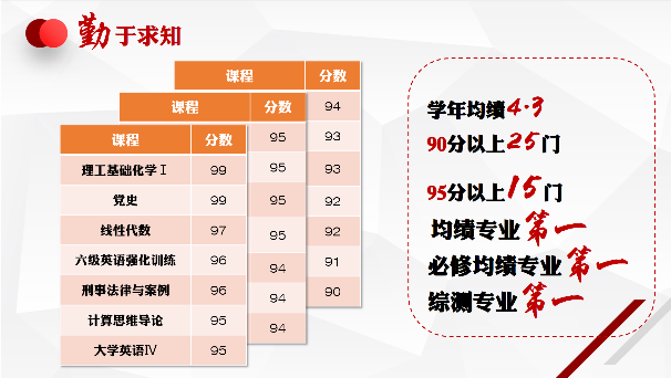19名候选人从专业学习、科研竞赛、创新实践、社会工作、志愿服务等多个方面分享了大学期间取得的成绩和个人感悟。他们中,有笃实好学,学期平均绩点4.3,90%以上课程90+的“高分学霸”;有志存高远,在各类赛场大显身手,拿下数十项奖项的“奖项收割机”;有热衷科创,主持多项大创项目,斩获3项国家级竞赛荣誉、3项省级竞赛荣誉的“科创达人”;有科普走心,讲述专业自信,影响人次超2W的“暖心博主”;有认真负责,服务同学,实现班级科创覆盖率100%,班级同学包揽专业前三的“好班长”;有自身绩点从2.4飞跃到4.1,实现自我蜕变的“逆袭者”……
