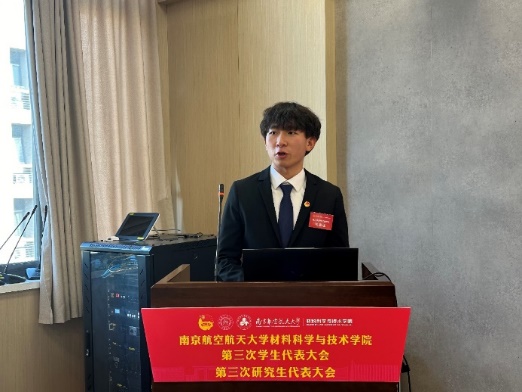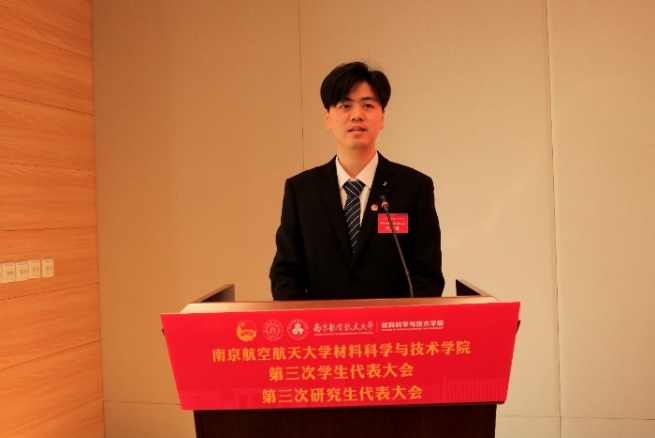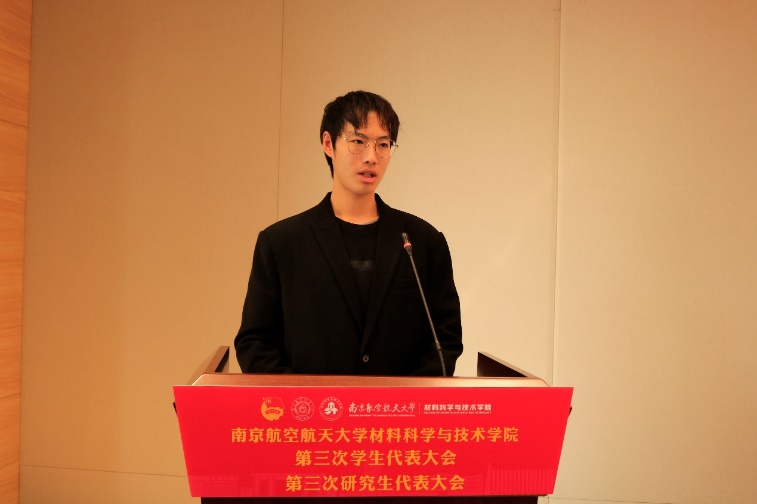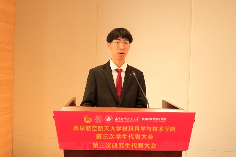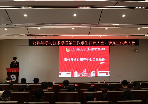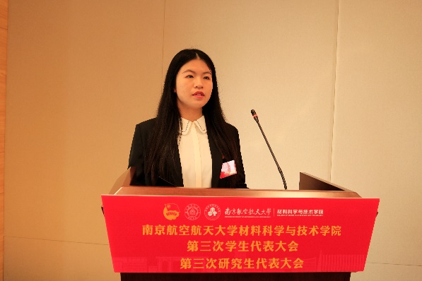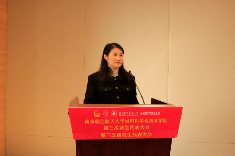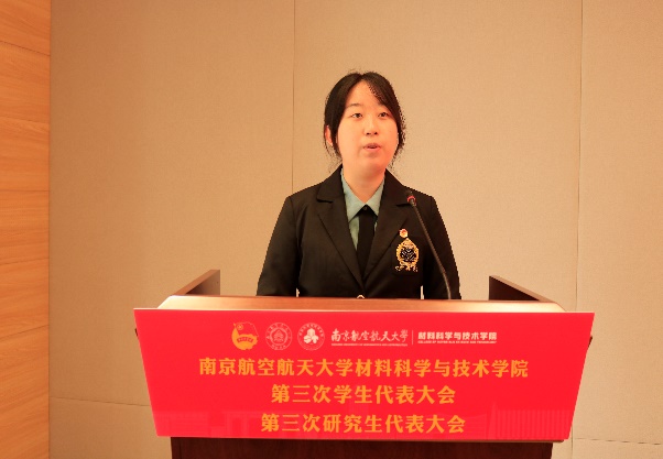 庄晓舒代表学院党委向大会的顺利召开表示祝贺。她表示,此次学代会、研代会是全院青年学生学习贯彻习近平新时代中国特色社会主义思想,认真落实学校第十七次党代会精神的重要举措。她希望新一届学生会、研究生会主席团要牢记嘱托,紧密围绕学校的育人目标,积极奋战在科技创新、志愿服务的第一线,在深化思想引领、繁荣校园文化、维护青年权益和加强自身建设等方面开展工作,团结带领全院同学,争做民族精神、时代精神的传承者、践行者,为“科技报国、材料强国”贡献青春力量。