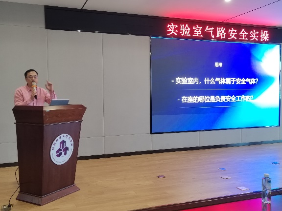 培训期间,师生结合自己实验室的情况,积极提问,对实验室内气瓶的常见问题进行现场的问答互动,邱璟副总经理逐一回答耐心指导,现场气氛热烈。