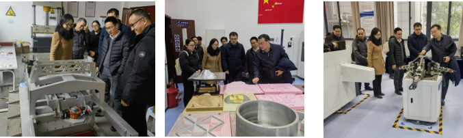 张弛一行对各团队技术成果介绍表示感谢,并对其中技术的应用,成果的转化进行深入的探讨。双方均表示希望通过此次交流,进一步加深合作,校企协同创新,促进科技成果转化、加速科技成果产业化。会后,与会人员参观了管材自由弯曲成形实验室,板材柔性渐进成形实验室、复合材料制造实验室等。