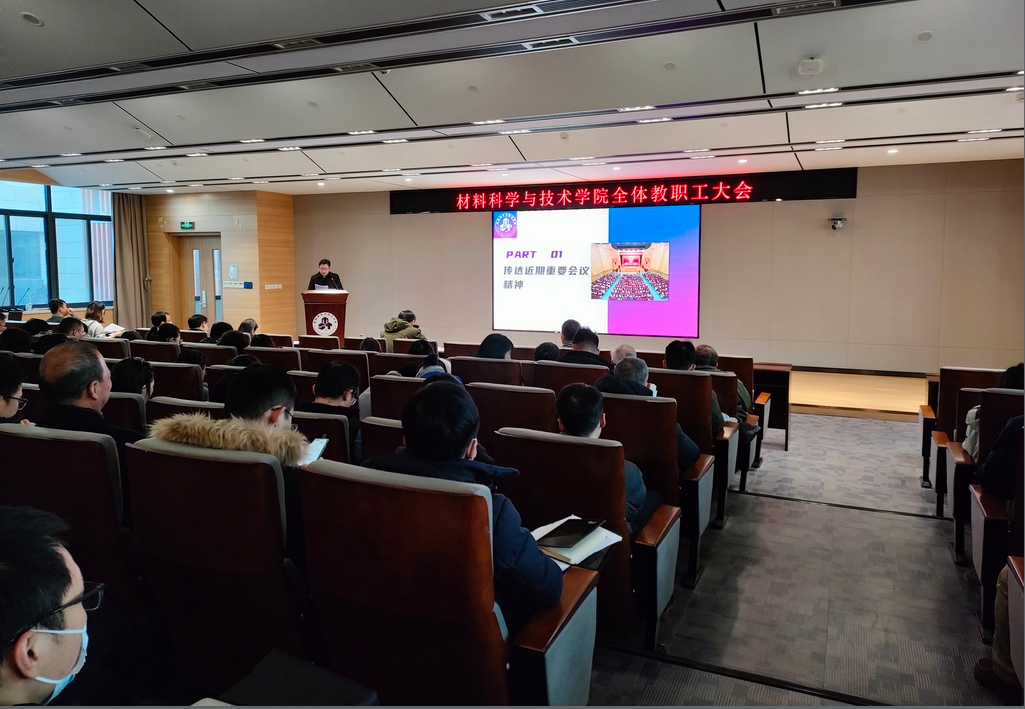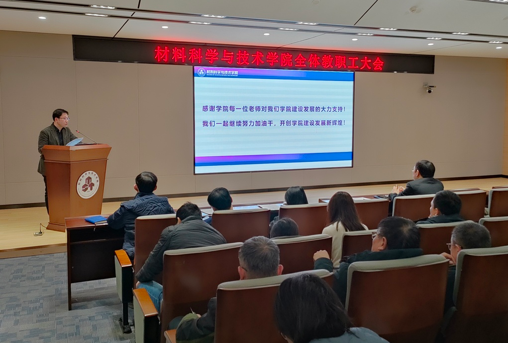 学院院长顾冬冬代表学院领导班子作《2023年度学院领导班子工作总结》报告,就学院扛牢政治责任、抓实主题教育,聚焦人才培养、学科建设、师资引培、科学研究、国际合作、文化建设等工作取得的成效进行汇报。他指出,2023年度学院在上一届和新一届班子的接续奋斗下,交出了满意的答卷。学院材料学科进入ESI排名全球前1‰,科研经费到款达到1.05亿,首个牵头国家重点研发计划项目、LJ专项,成功举办了“第八届先进设计制造青年论坛”“首届材料学科文化节”。未来,学院还要更加聚力推进党建业务深度融合、提升学科建设和人才培养质量、强化面向国家战略的科学研究等,为学校的双一流建设和高质量发展,贡献更多材料的智慧和材料担当。