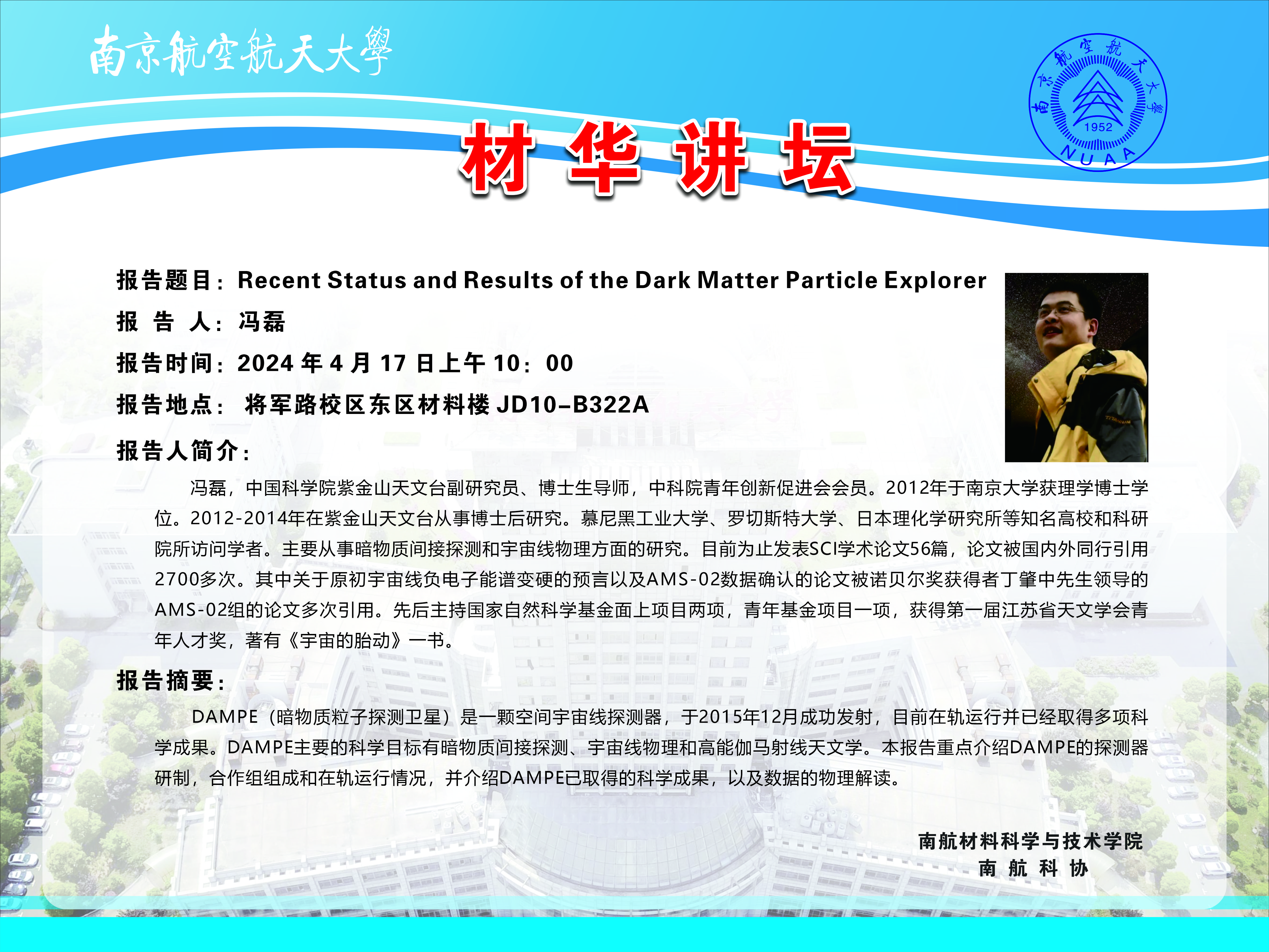 材华讲坛:Recent Status and Results of the Dark Matter Particle Explorer