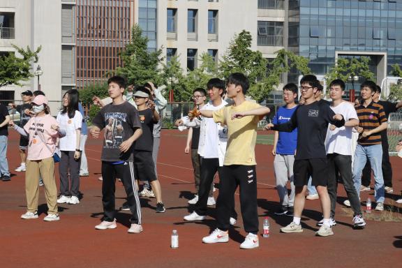 本次导学运动会设置五个比赛项目,共有四支队伍参加。参赛代表们首先在志愿者的带领下以瑜伽操的形式进行了充分热身。随后就进入了激烈紧张的比赛环节,过程中参赛队员热情高涨、斗志昂扬,与导师们团结协作完成趣味接力跑、一圈到底、五人六足折返跑、同心鼓颠球、团队拔河五个项目。最终ILWRT(激光焊接与再制造课题组)队获得了冠军。