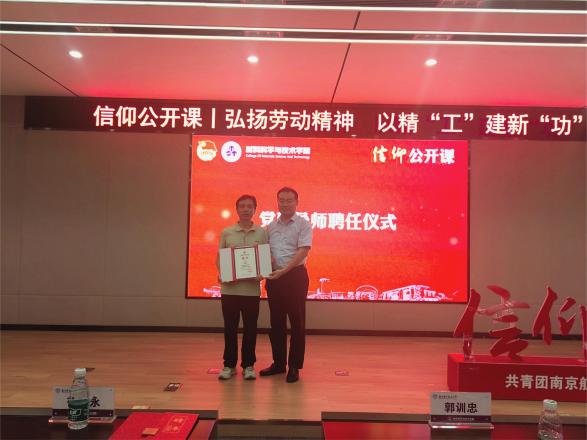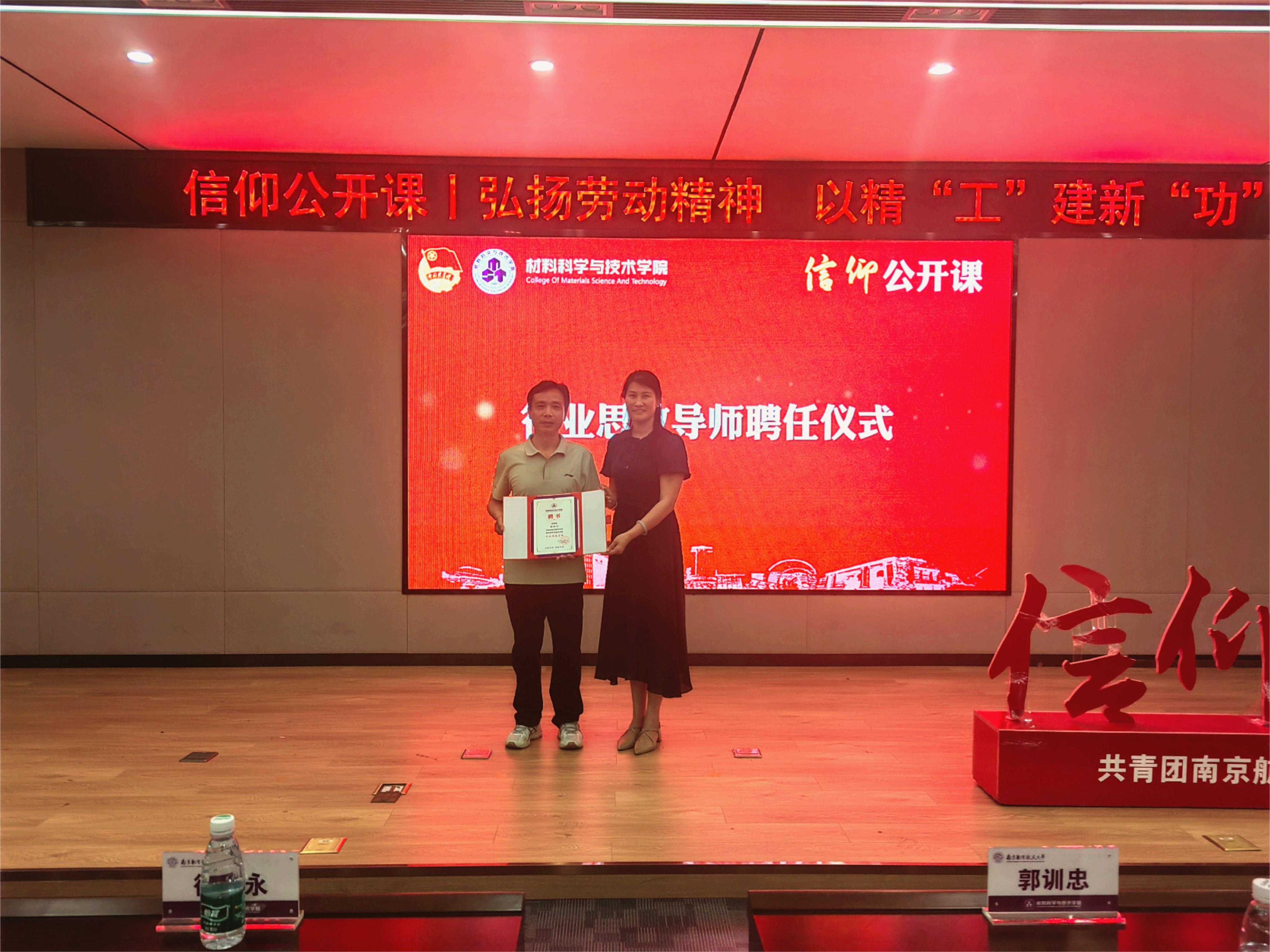 徐树永长期扎根兵器制造一线,肩负为国铸重器的使命任务,心系南航发展和青年学生的成长成才。公开课上,院党委副书记庄晓舒和副院长郭训忠分别为徐树永颁发“成人漫画 行业思政导师”“柔性成形技术及装备团队纵向党支部党建导师”聘书。