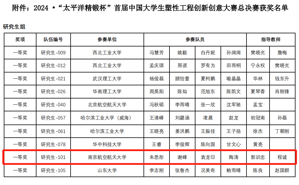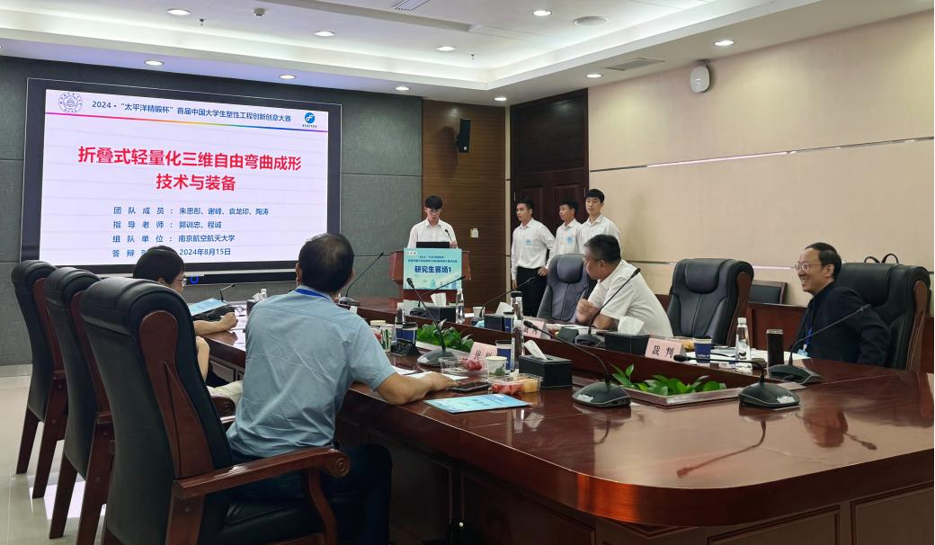 本次大赛由中国机械工程学会指导,中国机械工程学会塑性工程分会主办。自大赛启动报名以来,学院组建专业教师团队指导学生科研训练和创新实践,鼓励学生积极报名参加本次大赛。学院柔性成形技术与装备团队作品“折叠式轻量化三维自由弯曲成形技术与装备”在经过专家评审,初赛后成功脱颖而出,同时代表南航参与到本次的总决赛中。学院参赛队员在总决赛中充分展现了专业素养,以独到见解和创新思路来解决塑性加工领域碰到的实际问题,参赛队员在答辩中的突出表现也赢得了评委的一致好评。经过激烈的角逐,柔性成形技术与装备团队荣获首届中国大学生塑性工程创新创意大赛一等奖。