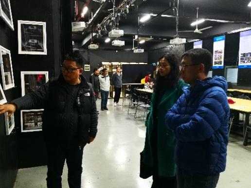 在艺术学院副院长朱琰和实验室主任范学智的陪同下,材料加工工程系支部一行参观了艺术学院和舞美工厂。