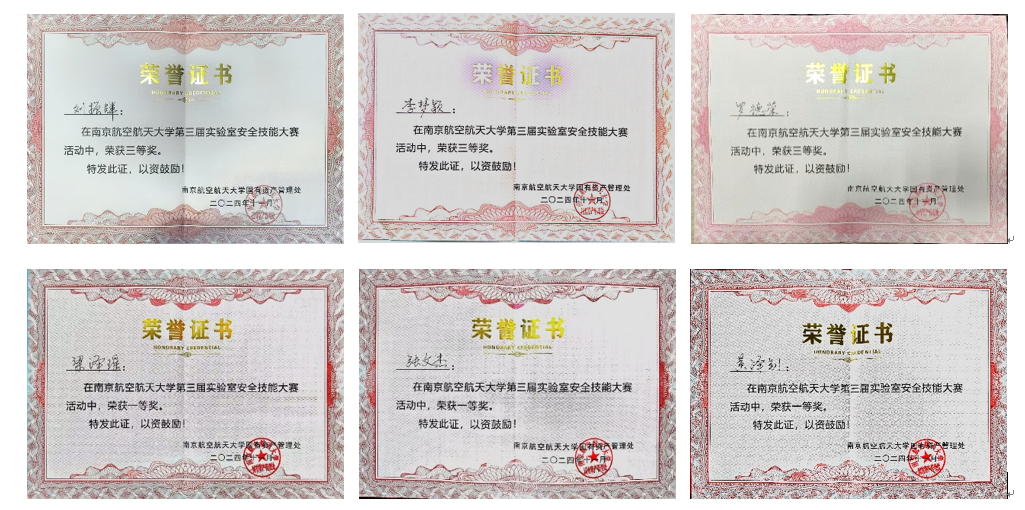 11月29日,南京航空航天大学第三届实验室安全技能大赛圆满落幕。在紧张而精彩的赛事中,成人漫画 参赛队伍表现出色。学生队伍梁泽瑶、张文杰、黄泽钊荣获学生组一等奖,教师队伍刘振辉、李梦颖、罗德荣荣获教师组三等奖。此次比赛的优异成绩,充分展现了成人漫画 师生出色的安全素养及优异的团队精神,也是学院长期以来重视实验室安全教育的成果。