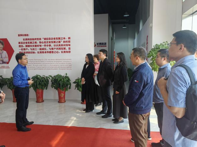 为深化校企合作,促进学生高质量充分就业,3月26日,学院党委书记张亚丽、院长顾冬冬带队赴常州长青科技股份有限公司开展访企拓岗促就业专项行动。院党委副书记庄晓舒、副院长常树全,各系负责同志、教师代表、毕业班辅导员代表一同参加。长青科技董事长周银妹、总经理丁静热情接待了学院一行。