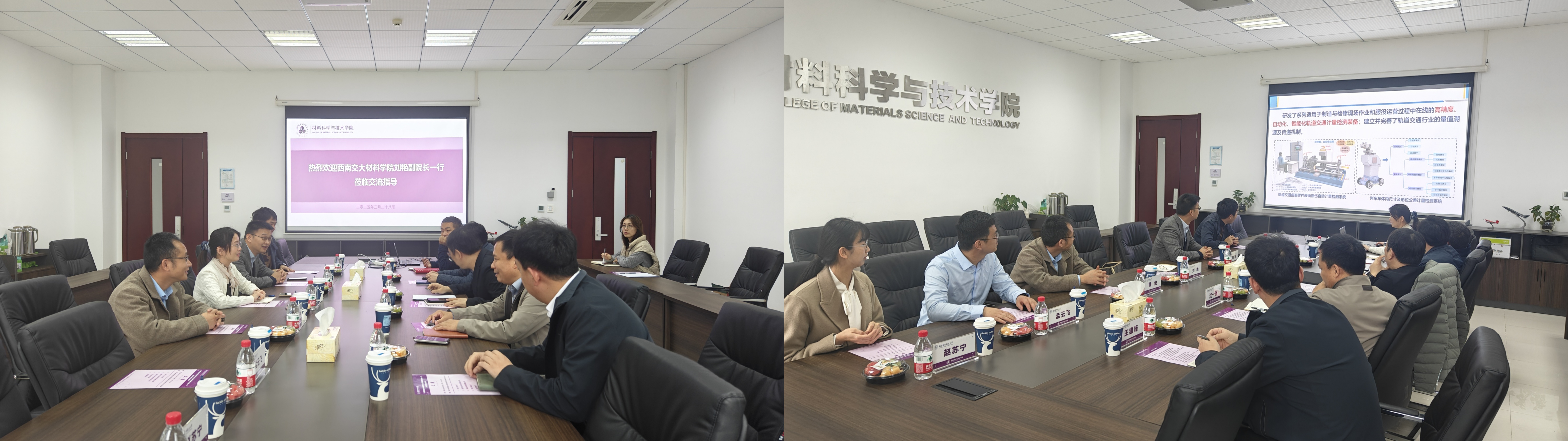 为深化兄弟院校间的交流合作,推动材料学科创新发展,2025年3月28日下午,西南交通大学材料科学与工程学院副院长刘艳教授带队来院开展调研交流,西南交大成人漫画 院长助理朱宗涛教授、熊俊教授、重大办主任张振林副教授、材料加工系副主任孟云飞副教授等随行调研。成人漫画 院长顾冬冬教授主持座谈会,学院专务刘周成副研究员、材料加工工程系沈一洲教授、周金堂副教授、王建峰副教授及科研办有关人员参会交流。