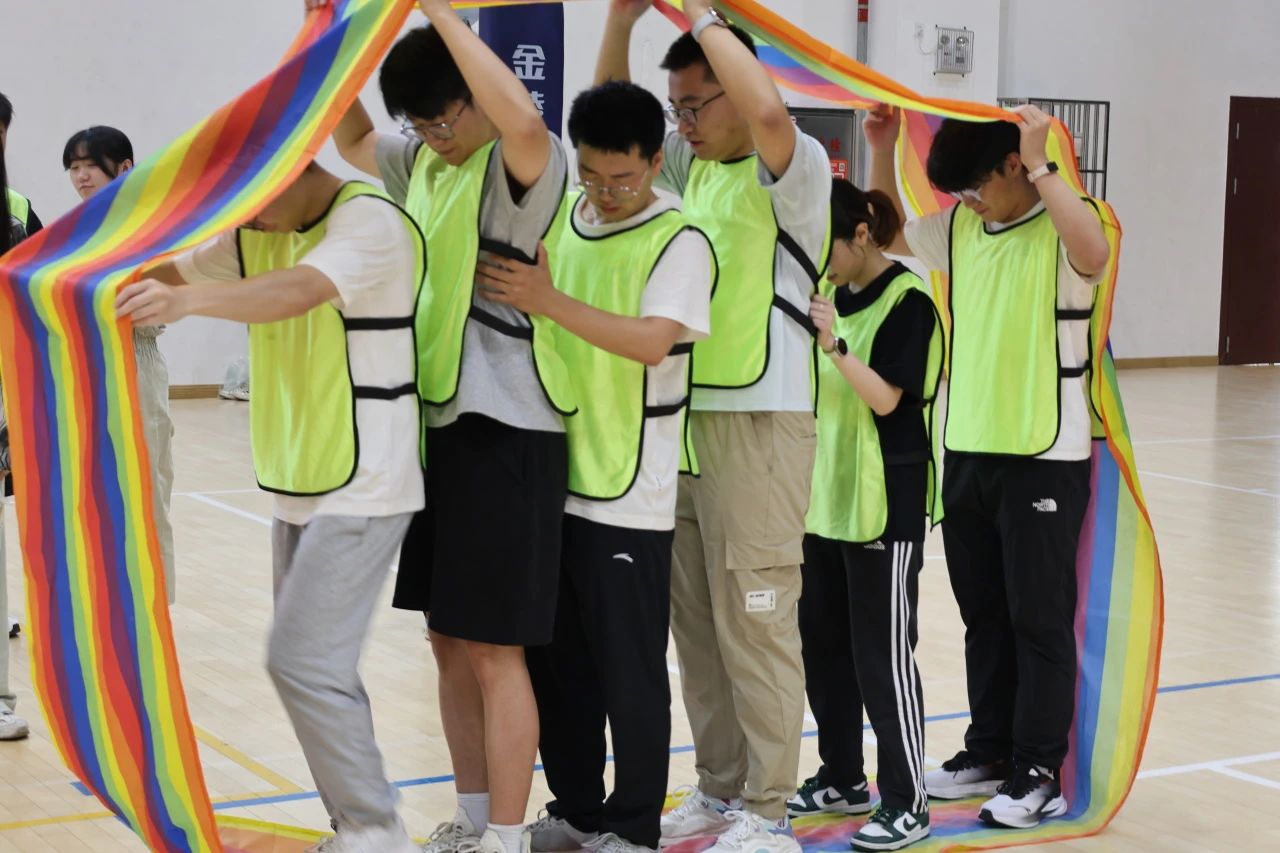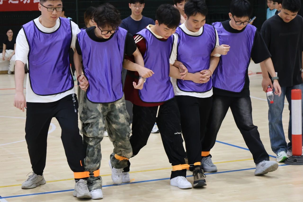 “环环相扣,守望相助”项目中,师生们手拉手围成的圆圈内,呼啦圈被迅速传递。伴随着抬手、下蹲等动作,参与者姿态虽不尽相同,却共同营造出赛场之上浓厚的欢乐氛围。