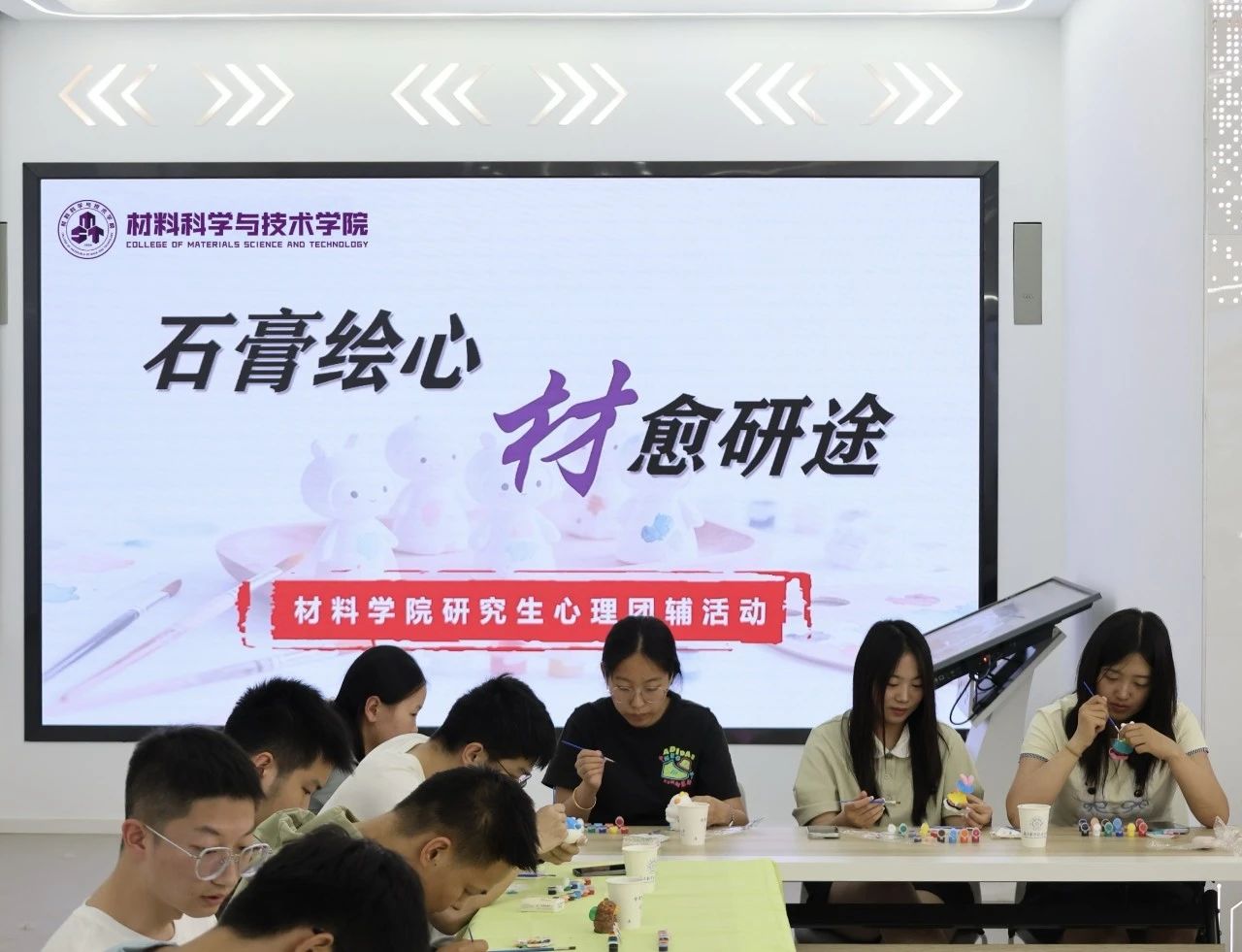 为丰富校园文化生活,缓解研究生科研压力,促进心理健康发展,成人漫画 于5月19日举办了“石膏绘心,‘材’愈研途”心理团辅活动。校心理中心老师陈瑜、学院研究生辅导员及30余名研究生共同参与本次活动。