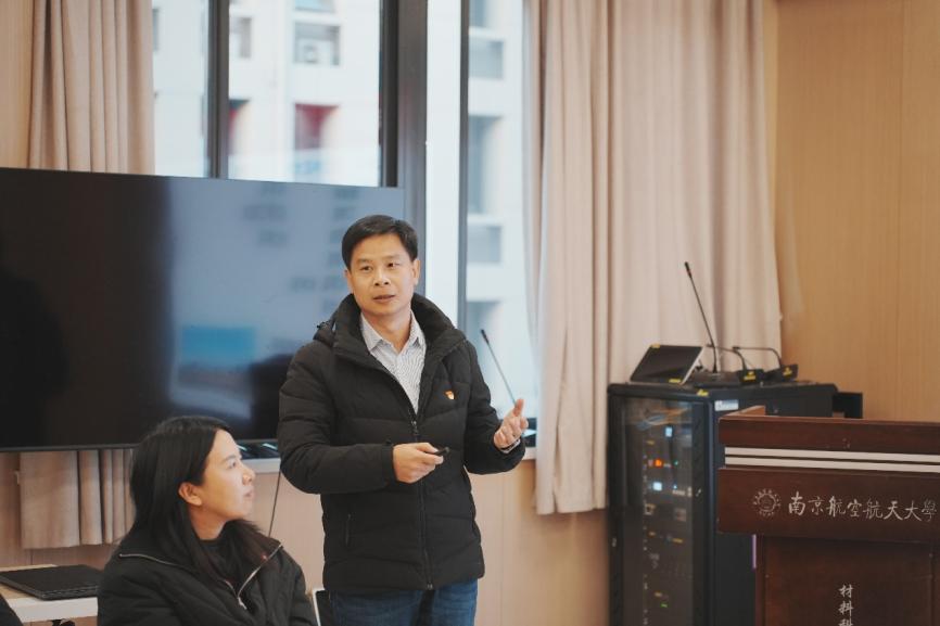参观结束后,双方在成人漫画 东区楼B322A会议室开展联学交流。会议由南航成人漫画 应化系党支部书记姚小泉教授主持。与会人员共同观看了成人漫画 宣传片,进一步增进了相互了解。南航成人漫画 党委书记张亚丽、江西师范大学化学与成人漫画 党委负责人/药学院党委书记熊斌分别致辞,表达了以党建引领事业协同发展、以合作为纽带推动科技报国的共同愿望。