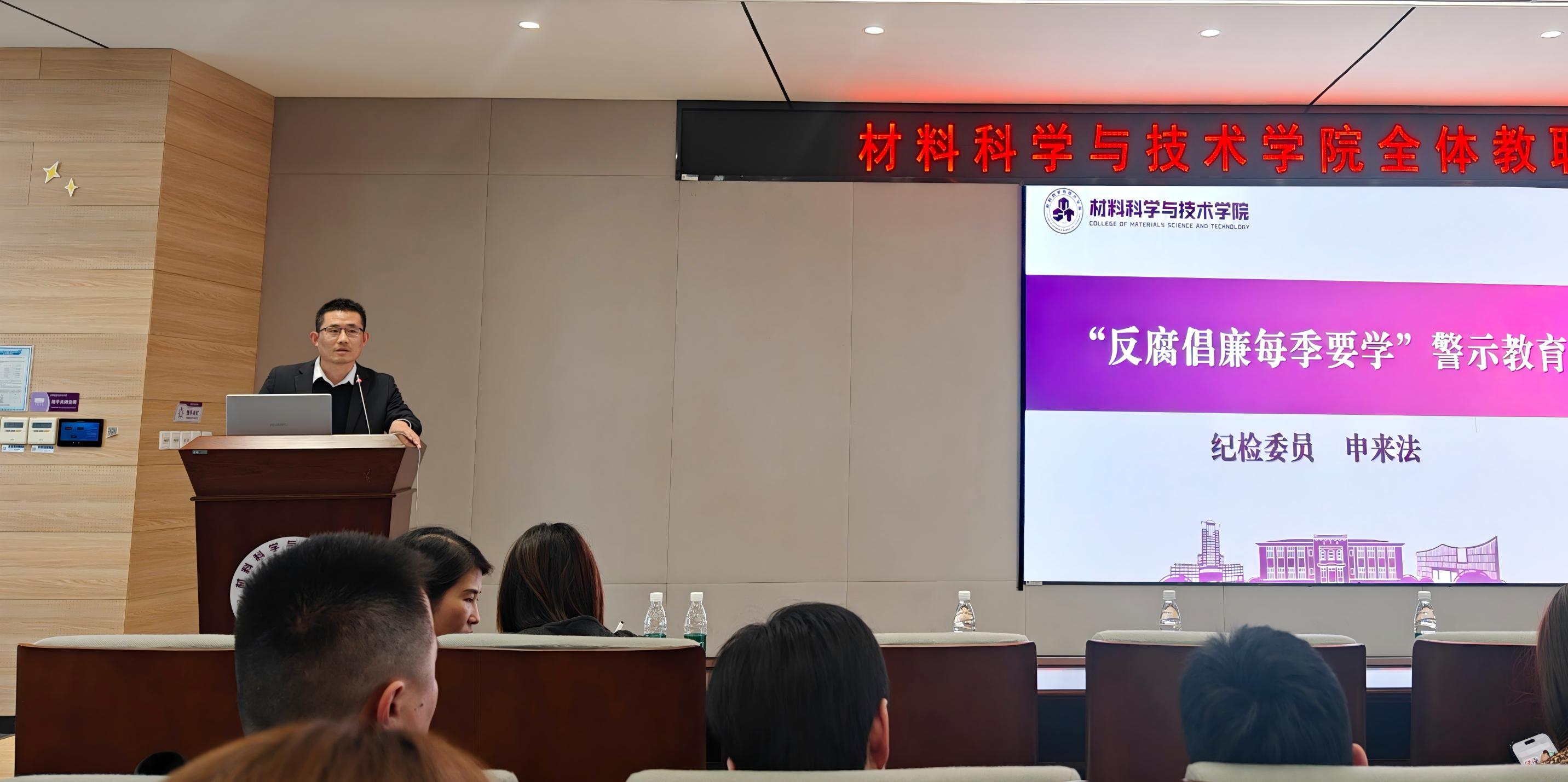 学院党委纪检委员、副院长申来法围绕“反腐倡廉每季要学”警示教育,领学习近平在二十届中央纪委五次全会上发表的重要讲话精神,通报了中央和国家机关6起违反中央八项规定精神典型问题,以案释纪、以案明规、以案促改,引导全体教职工深刻认识作风建设永远在路上,时刻绷紧纪律规矩这根弦,自觉守住底线、不越红线,共同营造学院风清气正的政治生态和育人环境。