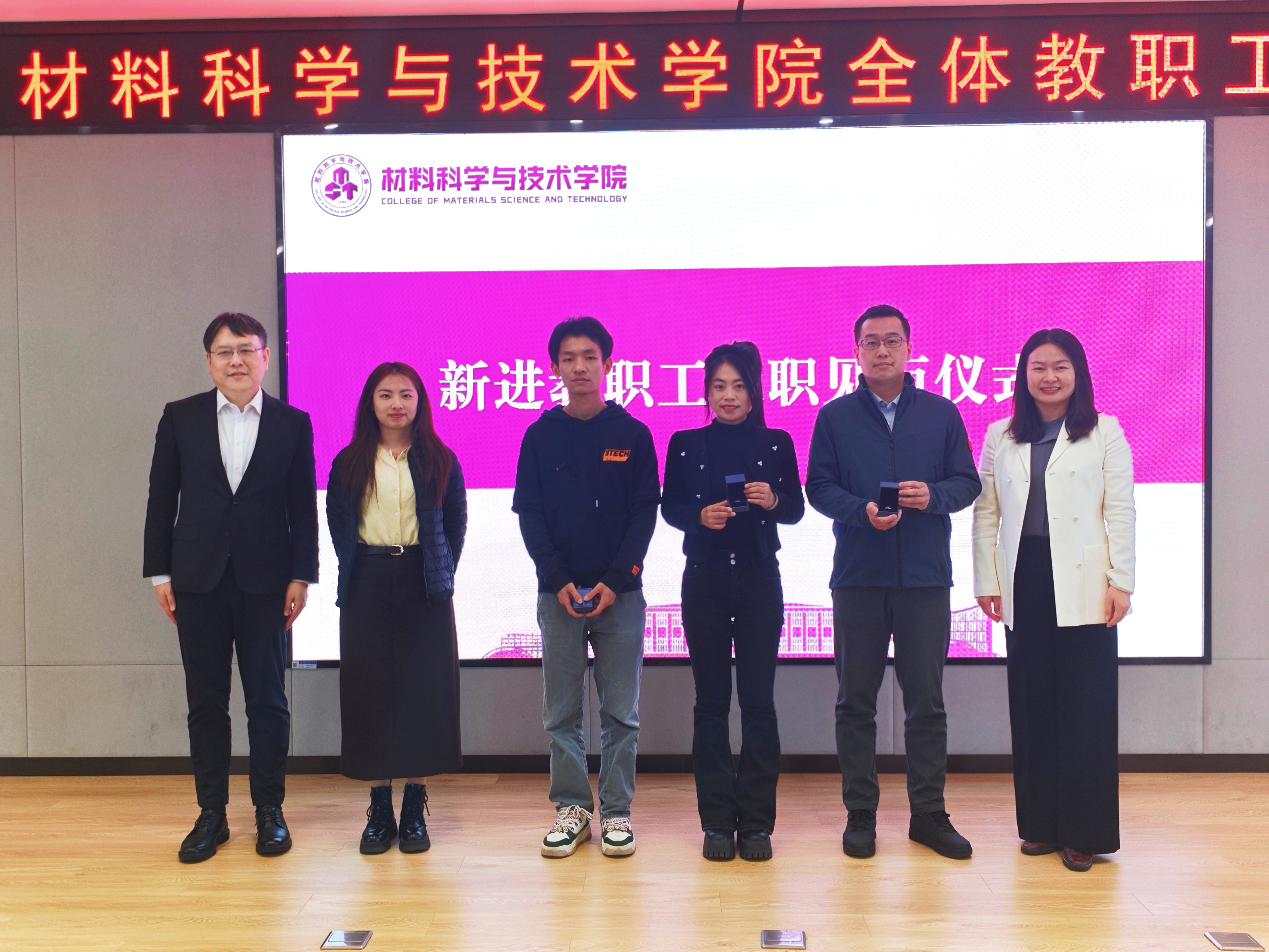 会议伊始,举行了新进教职工入职见面仪式,李文婷、王建、张立文、耿婷婷4位优秀青年才俊正式加入学院大家庭,学院党委书记张亚丽、院长顾冬冬为新进教师赠送院徽,并向他们致以热烈欢迎。四位新教师依次发言,纷纷表示将立足岗位职责,以饱满的热情深耕教学科研、锤炼育人本领,为学院高质量发展贡献青春力量。